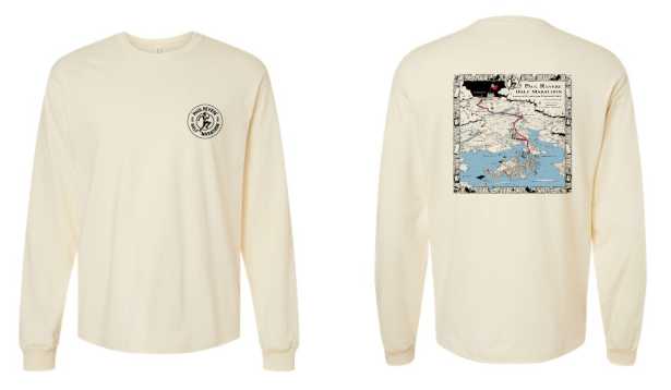 A race shirt is available for purchase. The shirt features the logo on the front and a hand drawn map of the course on the back. To ensure that you get a shirt before the race, order now!